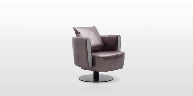 灵巧转动设计,可360度自由旋转;真皮靠背填充高密度海绵,柔软舒适;底座为钢板转盘金属漆處理,防锈耐用。