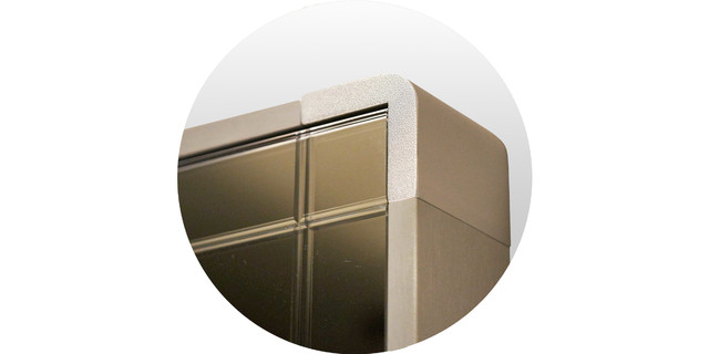 拉丝铝合金边框嵌入精加工镜片,可挂墙或落地,给人简洁、清爽的视觉效果。