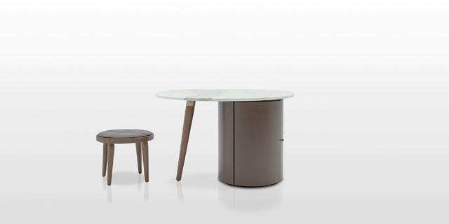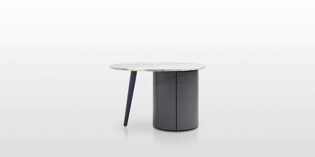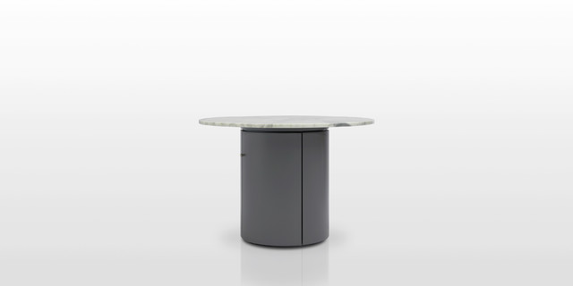 大理石面板质感圆润,圆形的多功能储物柜不分方向,可与茶台搭配作为副台使用。