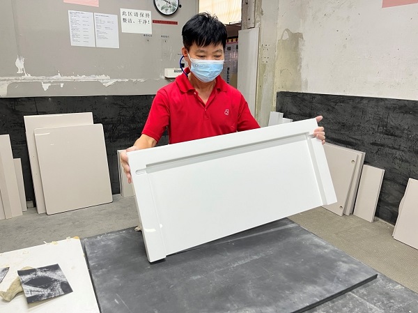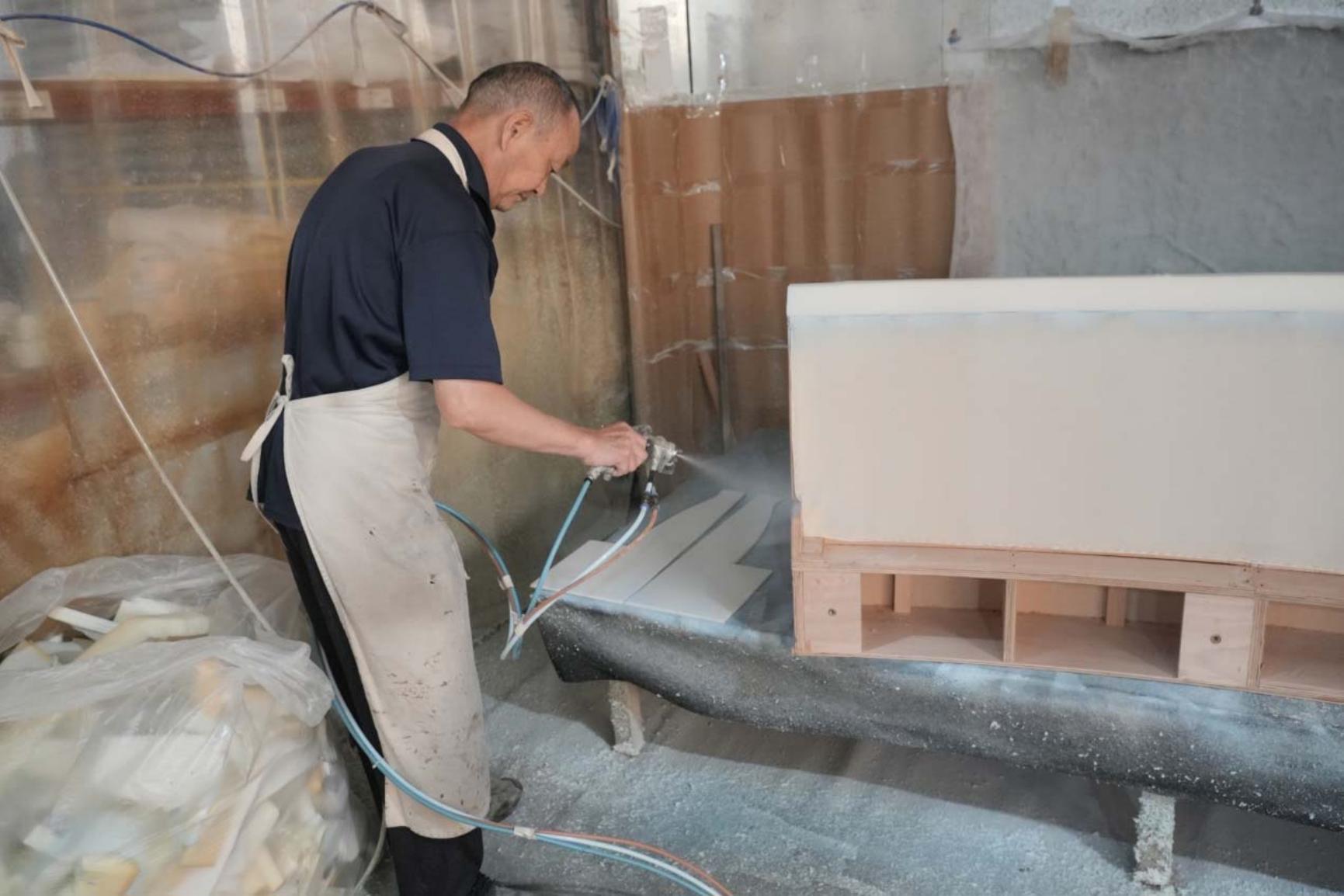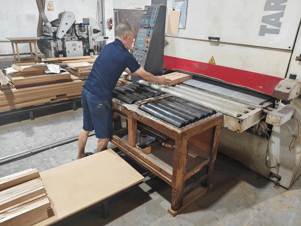 迪信专门从德国引进的工业级砂光设备,配备重型砂架结构和高扭矩电机,可穏定处理大幅面板材的精磨加工。设备搭载先进的数控系统,支持预设工艺参数,自动调节砂带压力及速度,配搭德国 AWUKO 高纯度碳化硅砂带,能确保板材表面均匀平整,为涂料工艺打下良好的基础。