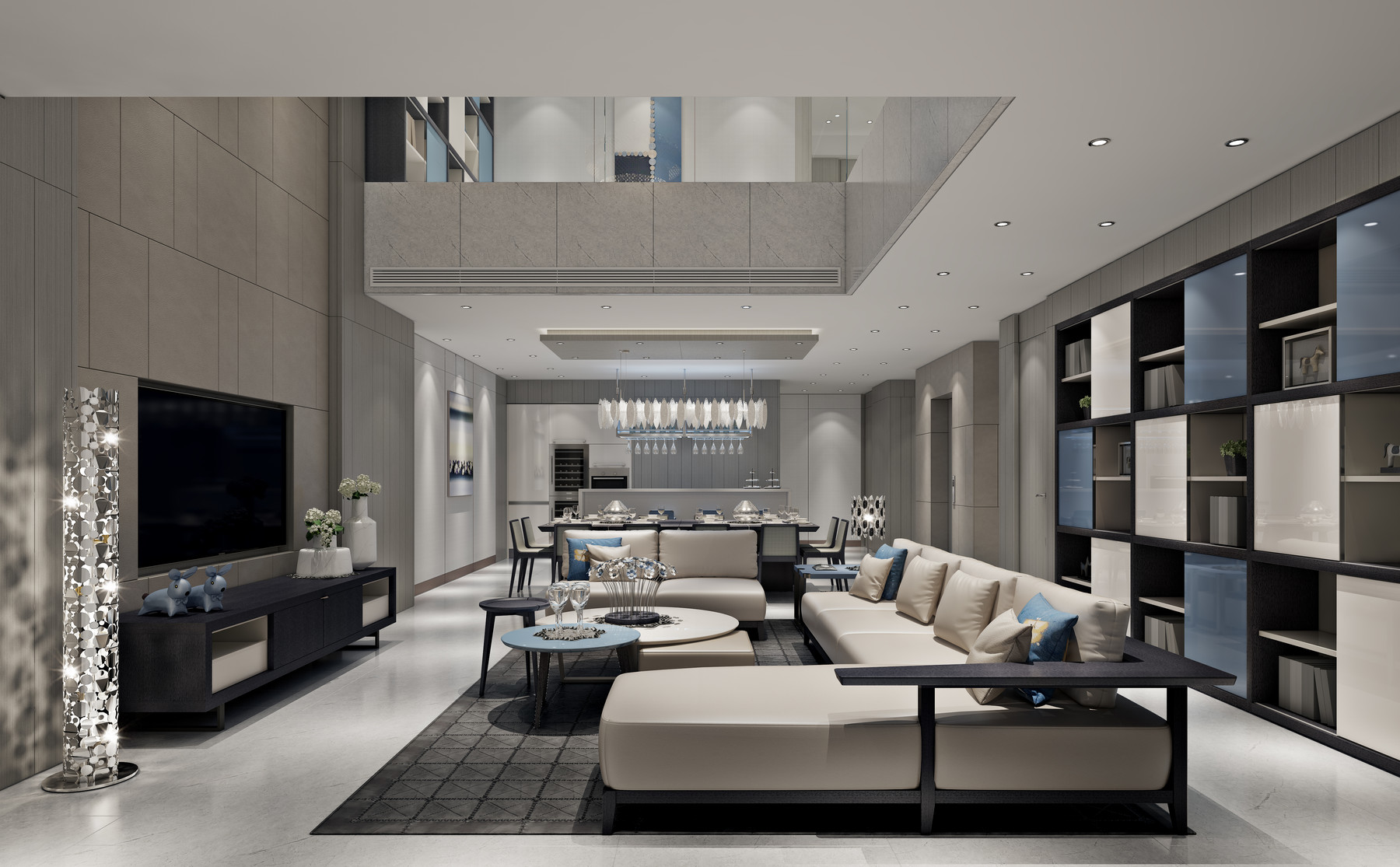 整个装修遵循由上到下的原则,首先处理天花吊顶、空调口、水电布局等。