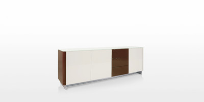 时尚简约的储物餐边柜,亮光漆和玻璃相结合,整体清爽简洁;推弹门设计,抽屉与开门结合,收纳更实用。