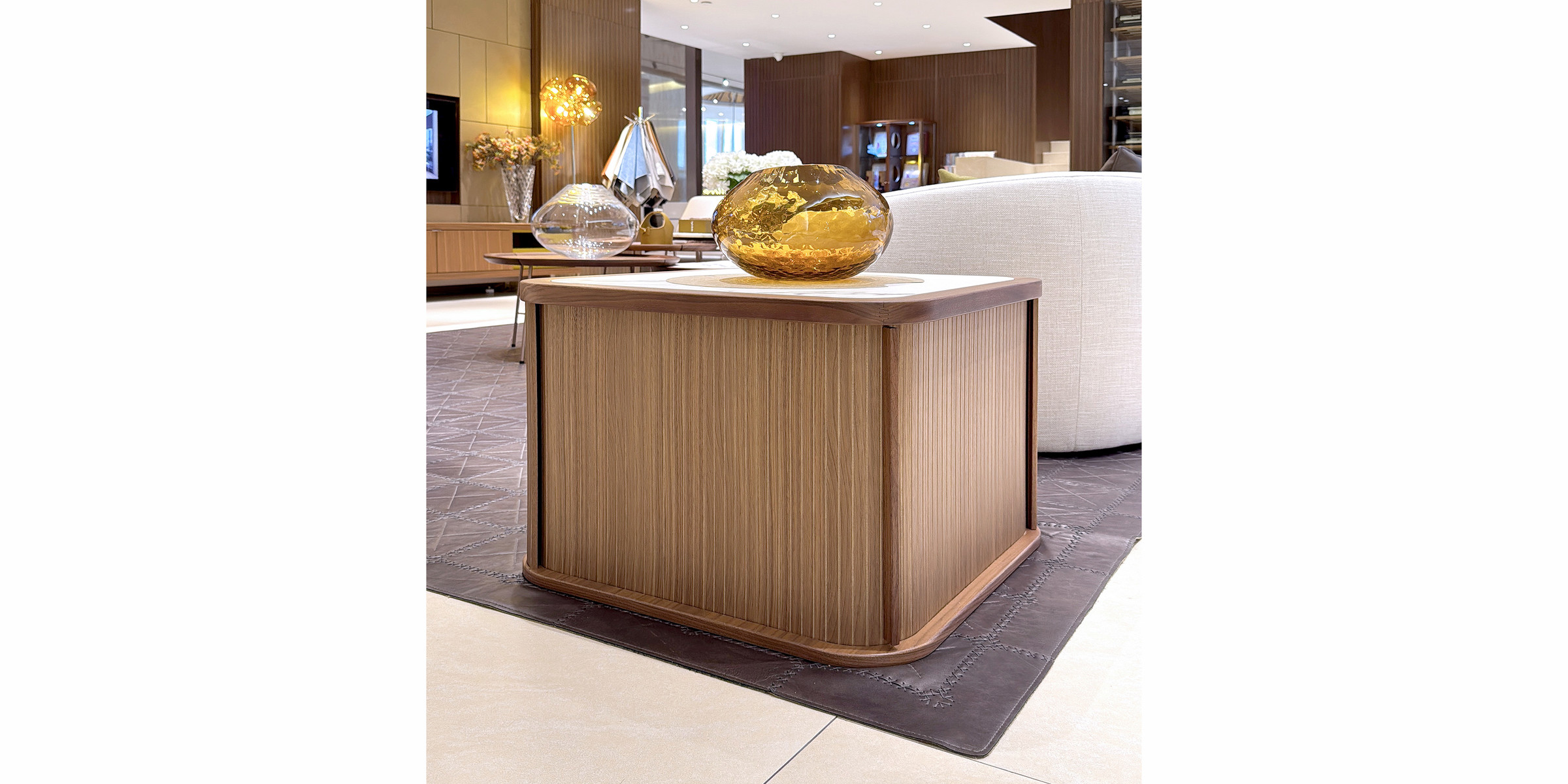 有规则的线条面,中空设计;滑动开关方式,储存空间大且结构稳固。