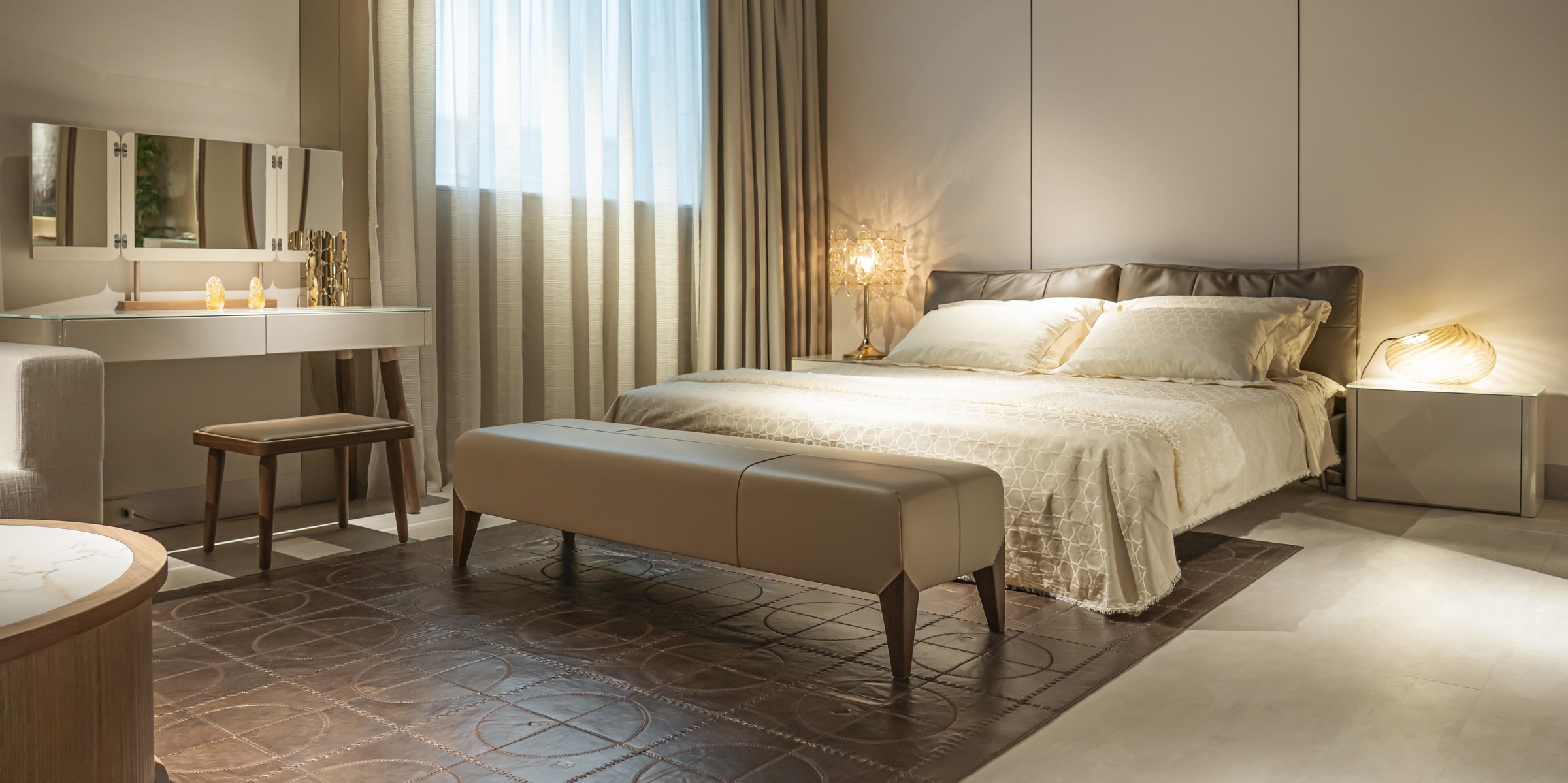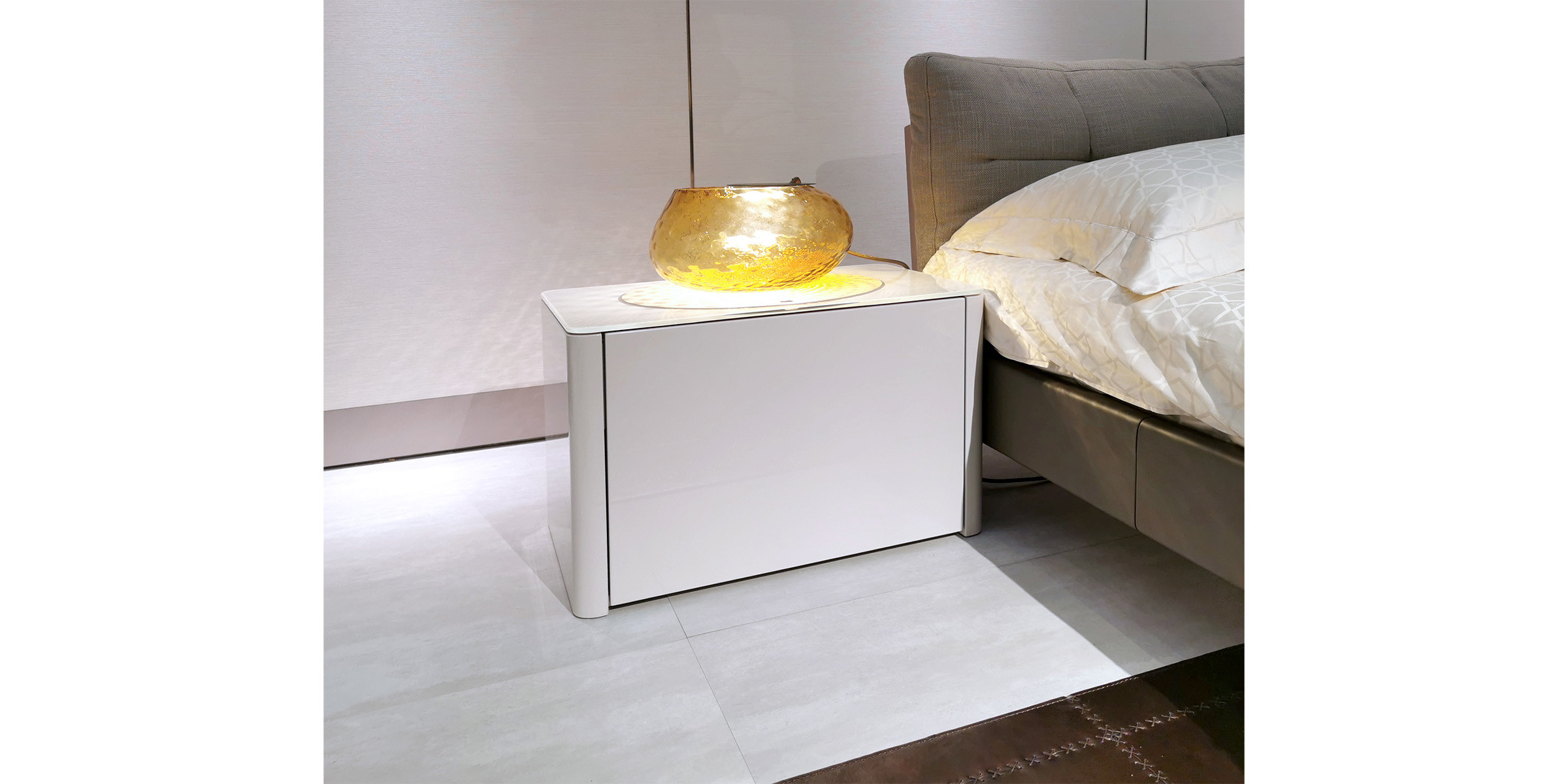 钢琴漆搭配钢化玻璃设计既简洁又耐用,巧妙的内藏指纹密码锁抽屉设计满足了私密需求。