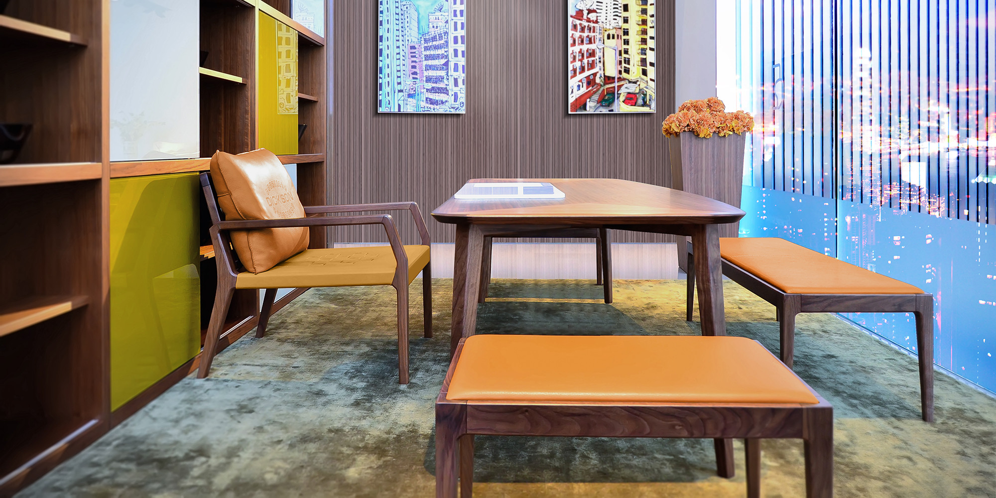 精选北美橡木或胡桃木贴面,实木脚架,人造石茶盘,台面弧形抹边设计,美观实用。