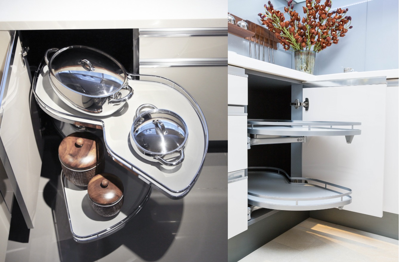凯斯宝玛LeMans II⻜碟 曾荣获德国功能性发明专利及红点设计⼤ 奖;层板⾯经过防滑处理,⾦属⾯漆通过 96⼩时盐雾测试,耐油污腐蚀;⻜碟可从 橱柜盲⻆整个转出,将柜中物品轻松地转 到⾯前,每层可承重25公⽄。