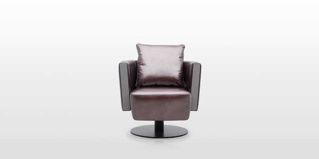 灵巧转动设计,可360度自由旋转;真皮靠背填充高密度海绵,柔软舒适;底座为钢板转盘金属漆處理,防锈耐用。