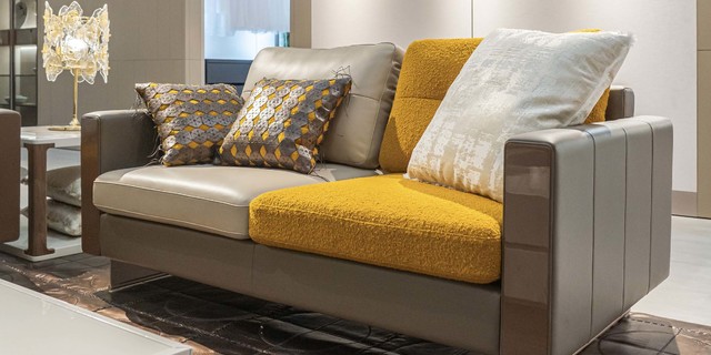• 意大利真皮/布料面料• 扶手装饰板亮光钢琴漆/胡桃木/橡木亮光钢琴漆经2层UV底漆和2层意大利PU亮光漆喷涂处理,羊毛球高速抛光北美黑胡桃木皮喷涂3层水性透明漆(BW-S)美国橡木皮喷涂3层开口漆(KYG)美国橡木皮喷涂3层水性透明漆(WO-S)• 座垫采用高密度海绵• 靠垫填充人造羽绒• 优质夹板实木内架• 底座优质扁钢特殊防锈处理,经1层意大利PU玫瑰金和透明面漆/1层PU深灰面漆喷涂