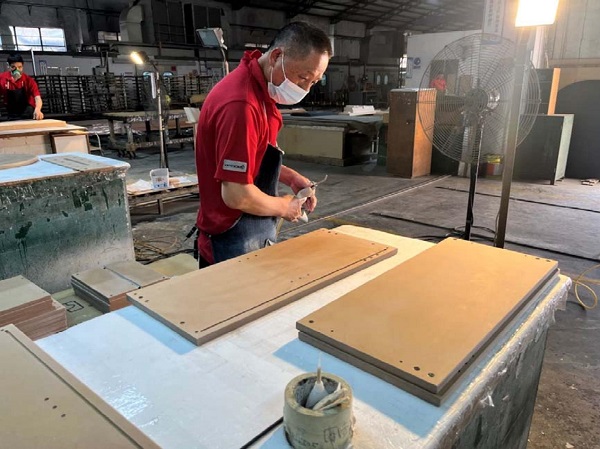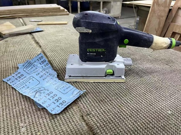 迪信专门从德国引进的工业级砂光设备,配备重型砂架结构和高扭矩电机,可穏定处理大幅面板材的精磨加工。设备搭载先进的数控系统,支持预设工艺参数,自动调节砂带压力及速度,配搭德国 AWUKO 高纯度碳化硅砂带,能确保板材表面均匀平整,为涂料工艺打下良好的基础。