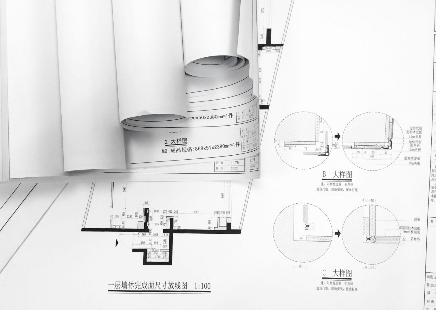 施工图纸非常细致,大到地板贴砖,小到钻墙洞挂壁画,从硬装到软装,所有细节都有包含。就这样,迪信又顺利地点亮了家装施工新技能。