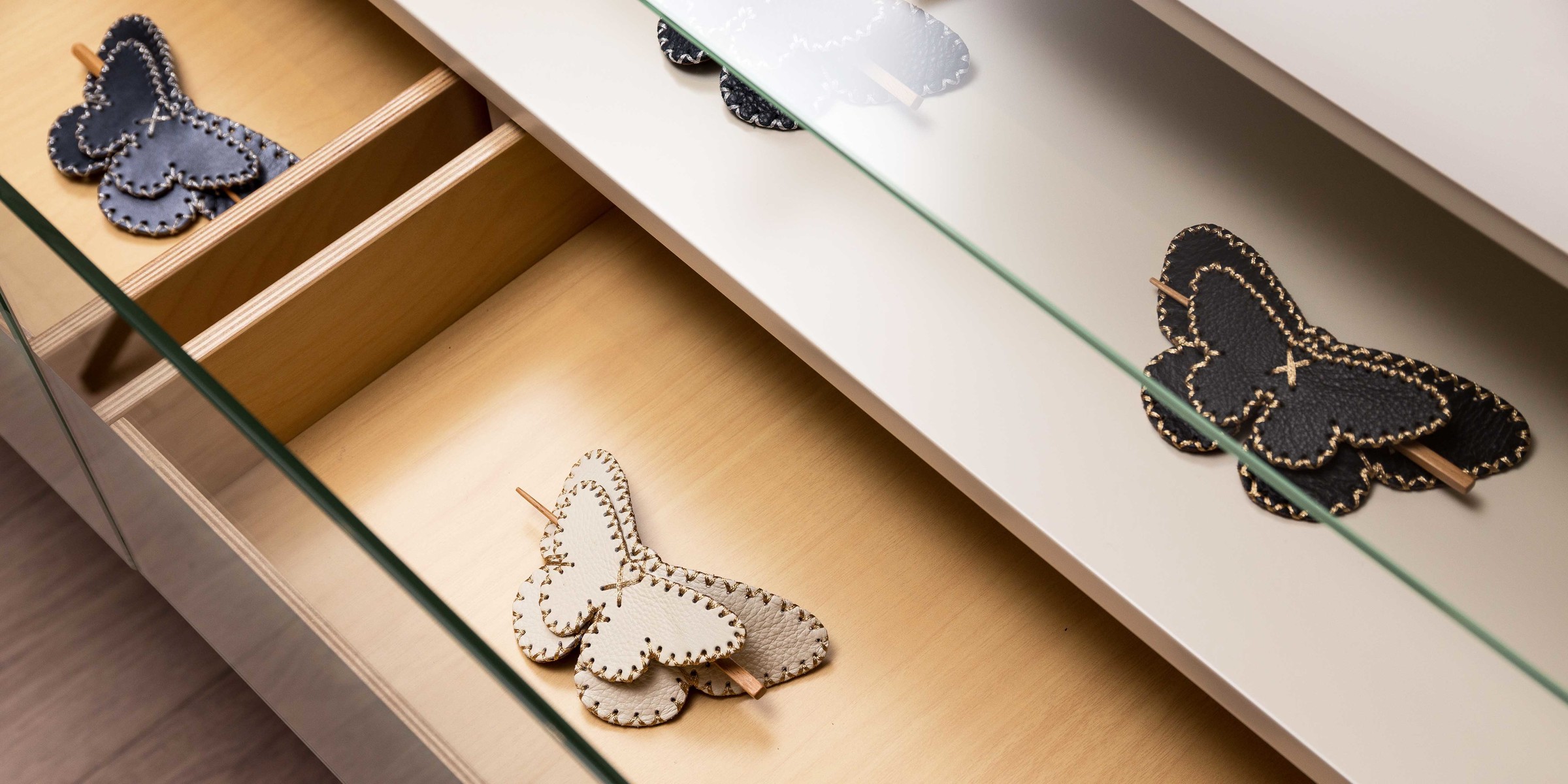钢化玻璃柜与意大利钢琴漆完美结合,两层高深抽屉搭配一层透明玻璃抽屉,强大储物的同时也焕发着时尚和活力。