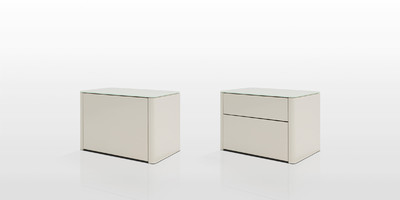 钢琴漆搭配钢化玻璃设计既简洁又耐用,巧妙的内藏指纹密码锁抽屉设计满足了私密需求。