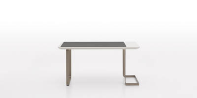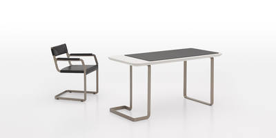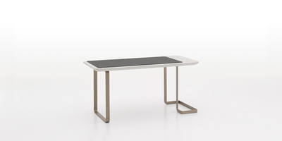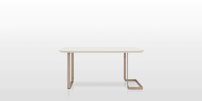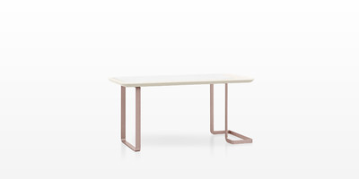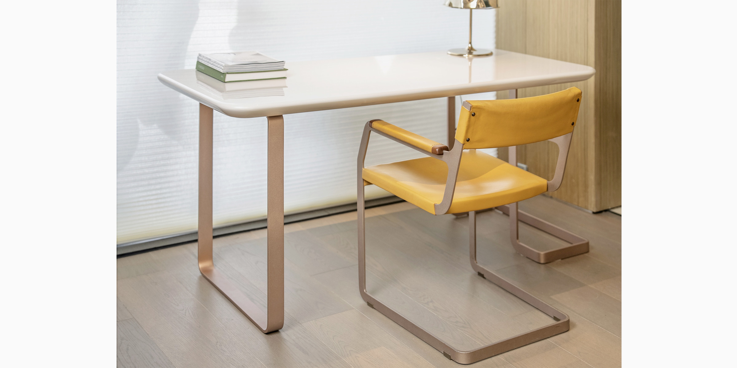 全流线型线条设计,桌面覆盖雾化玻璃,玫瑰金实心扁钢腿造型别致时尚。
