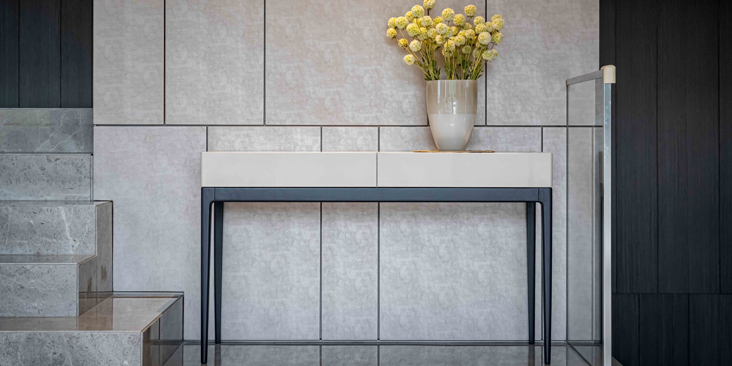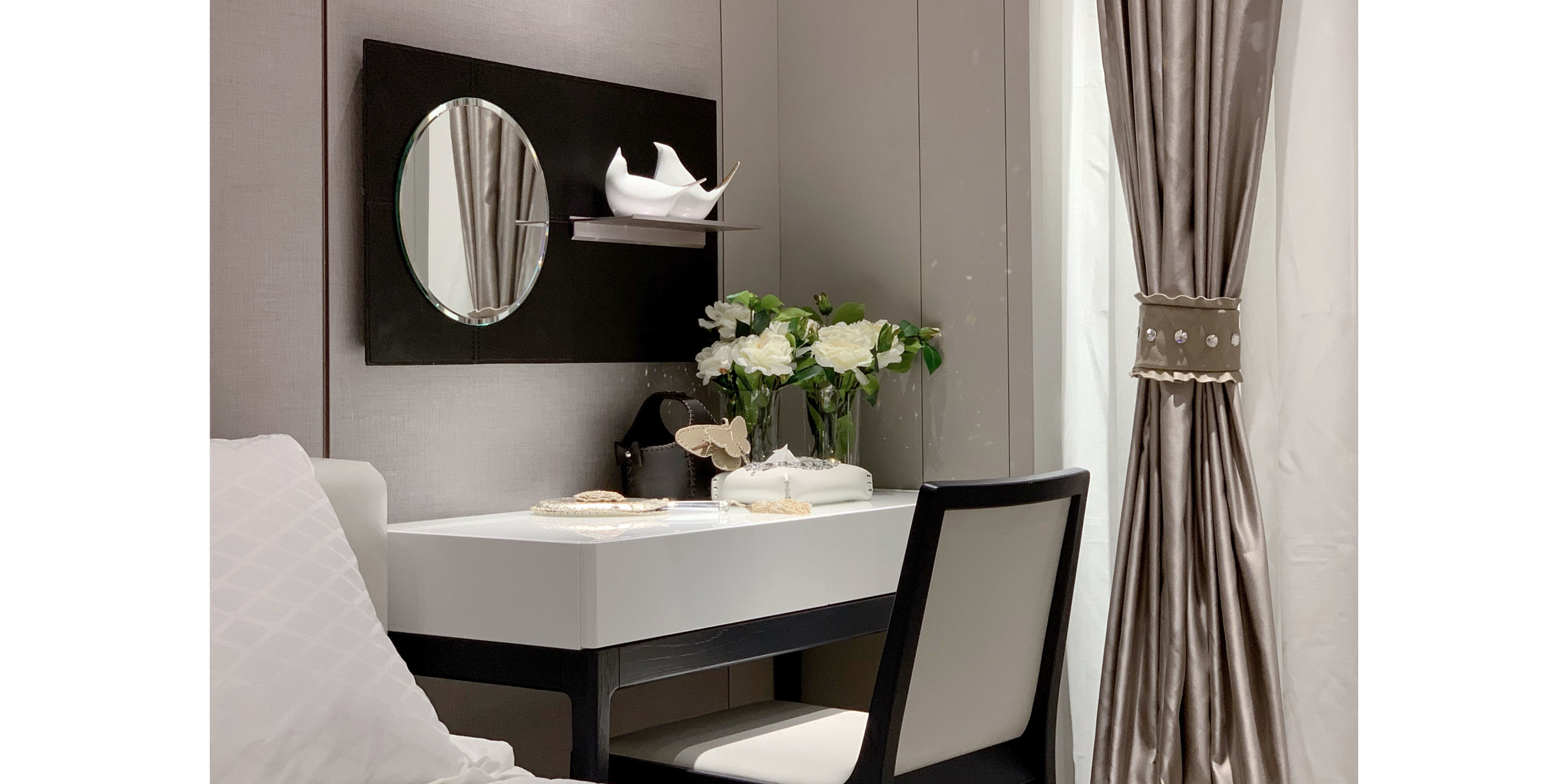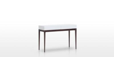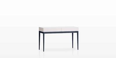 钢化玻璃面搭配实木脚设计,结构稳固、简单大方;大容量双抽屉设计;妆台、玄关柜一桌多用。