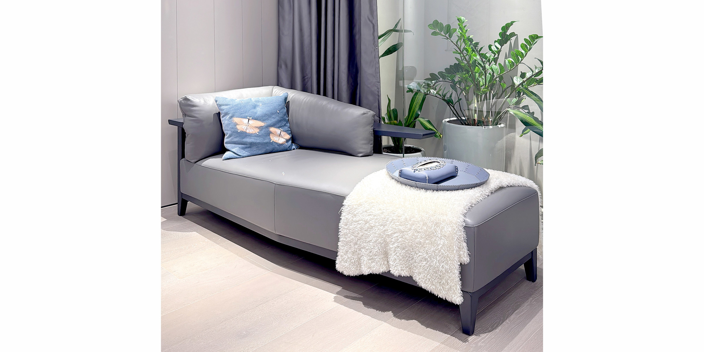 意大利真皮与北美实木结合,沙发靠背设计独特,既美观又实用;细腻的皮质和自然的原木色组合,线条简洁漂亮。