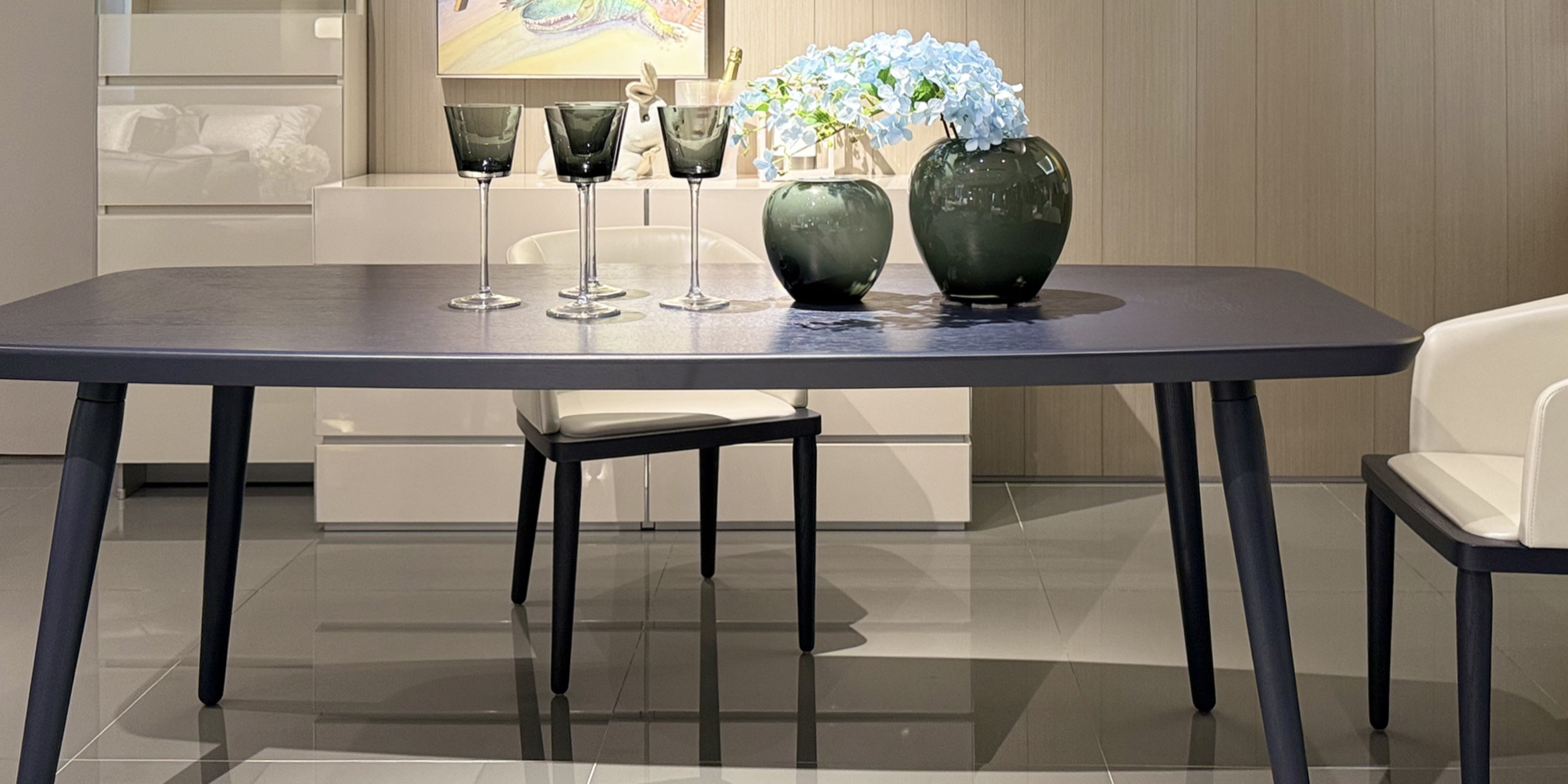 台面意大利高亮光钢琴漆,搭配自主研发的固定装置实木脚架,美观耐用。