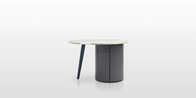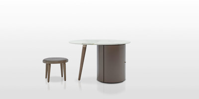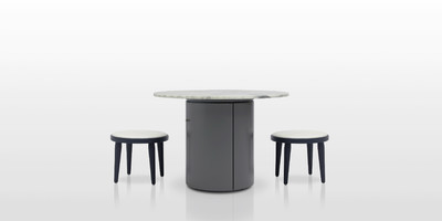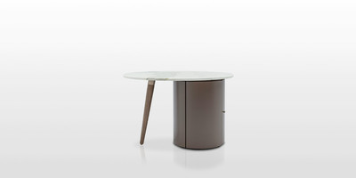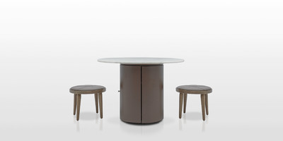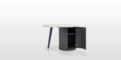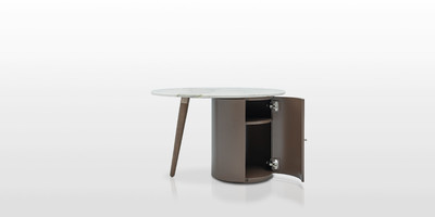 大理石面板质感圆润,圆形的多功能储物柜不分方向,可与茶台搭配作为副台使用。